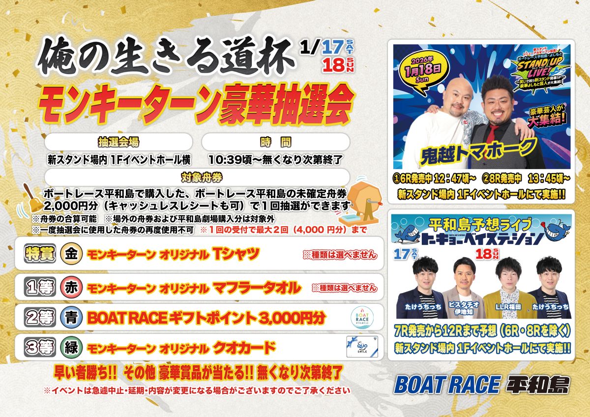- モンキーターン豪華抽選会&平和島予想ライブ